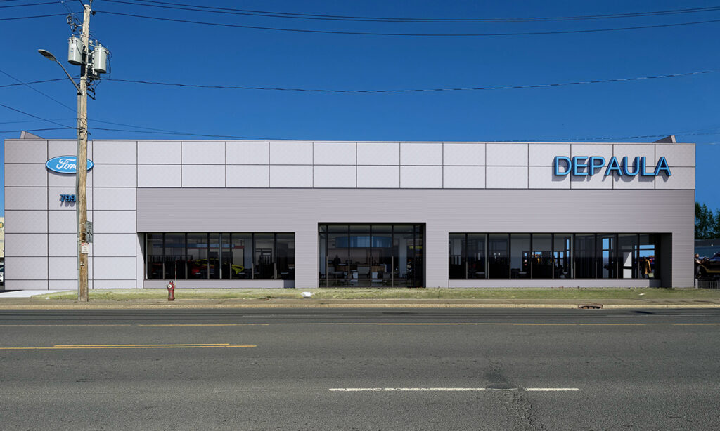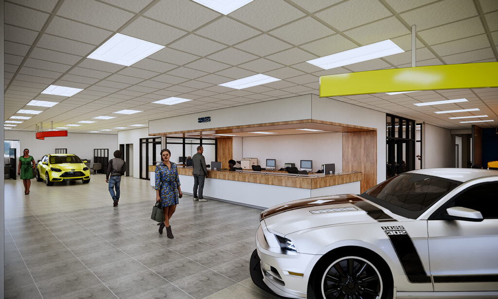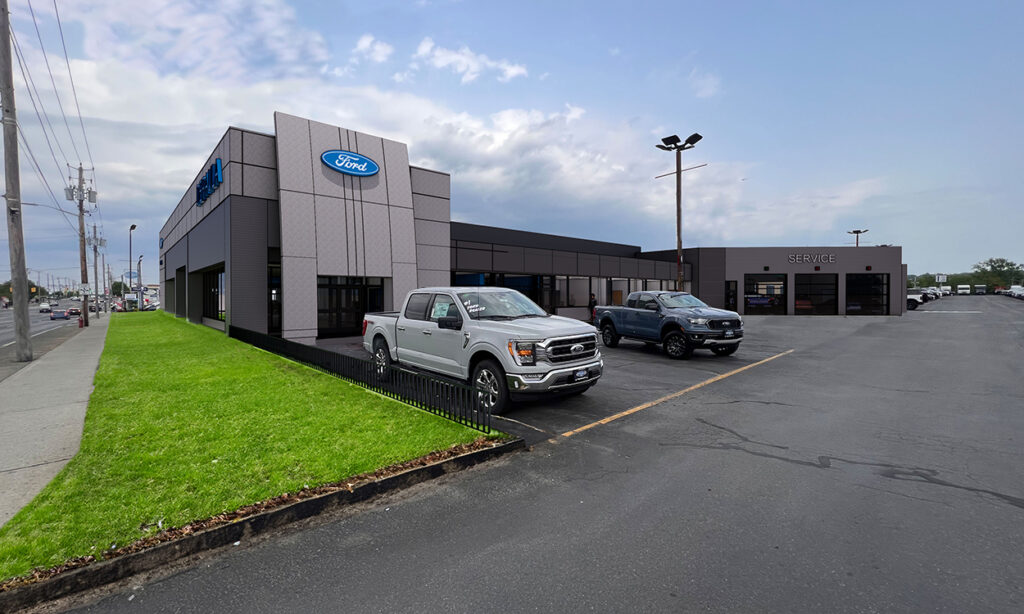 Site-specific design integrates Ford Signature Design standards to support a successful local franchise and enhance the customer experience.